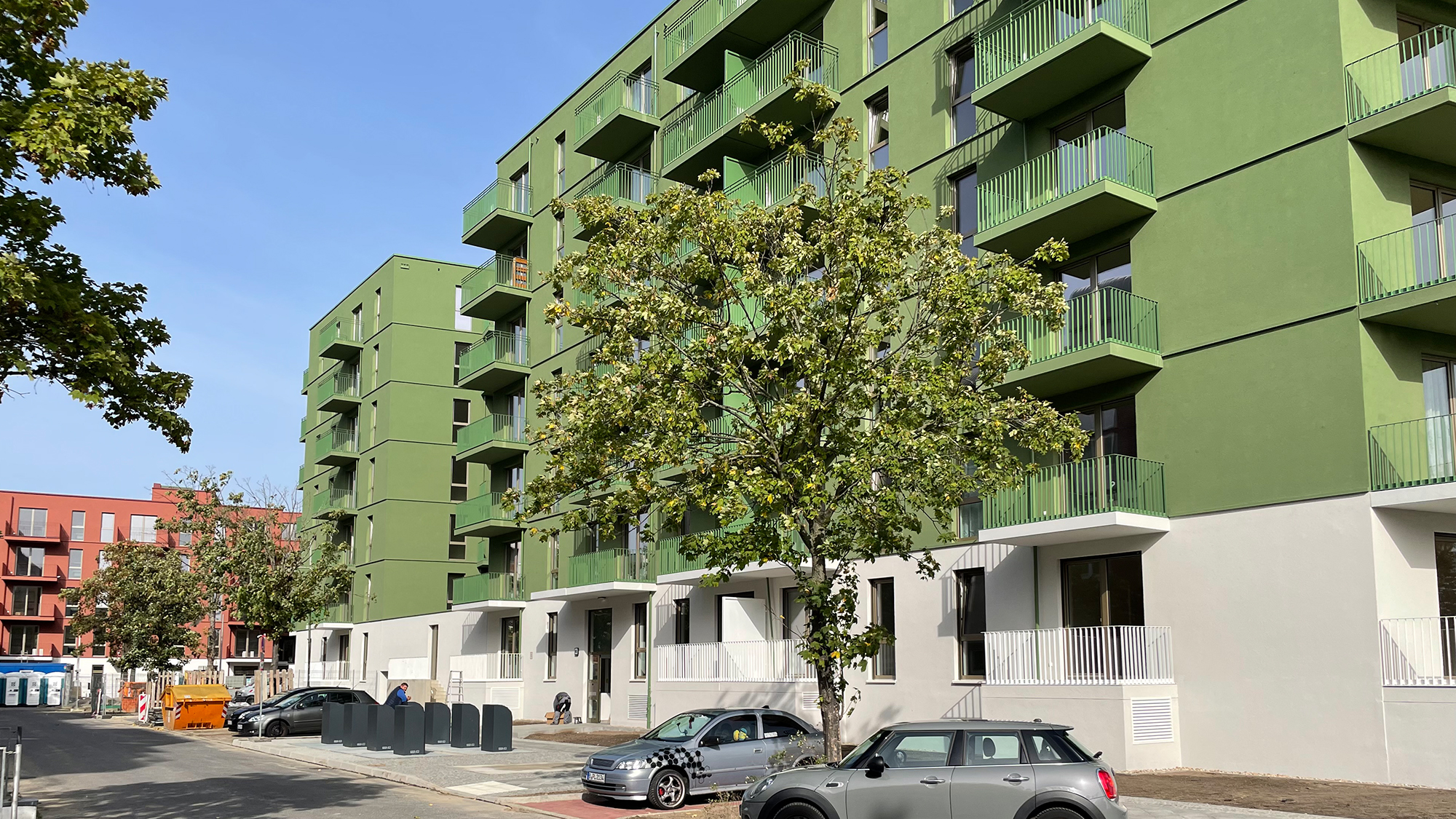 Zum Anfang des IV. Quartals stand die Fertigstellung des grünen Bauteils Süd an. Die ersten Mieter der 400 Wohnungen sind bereits eingezogen. Die Fertigstellung des roten Bauteils Nord ist zum Ende des Jahres vorgesehen. Die Außenanlagen werden im Frühjahr 2024 angelegt.