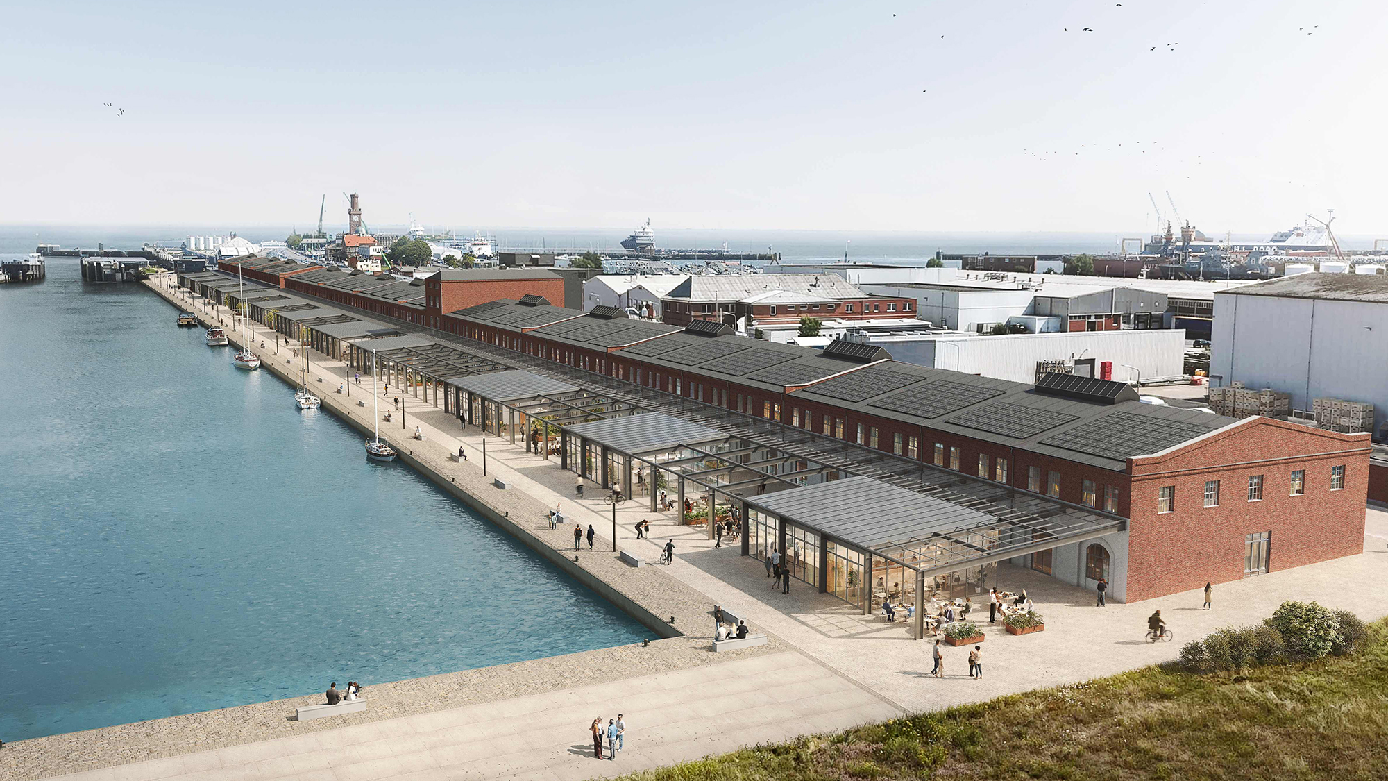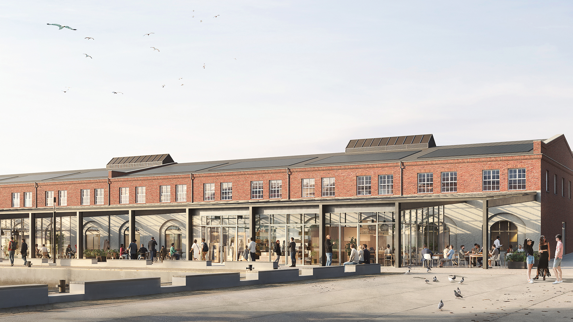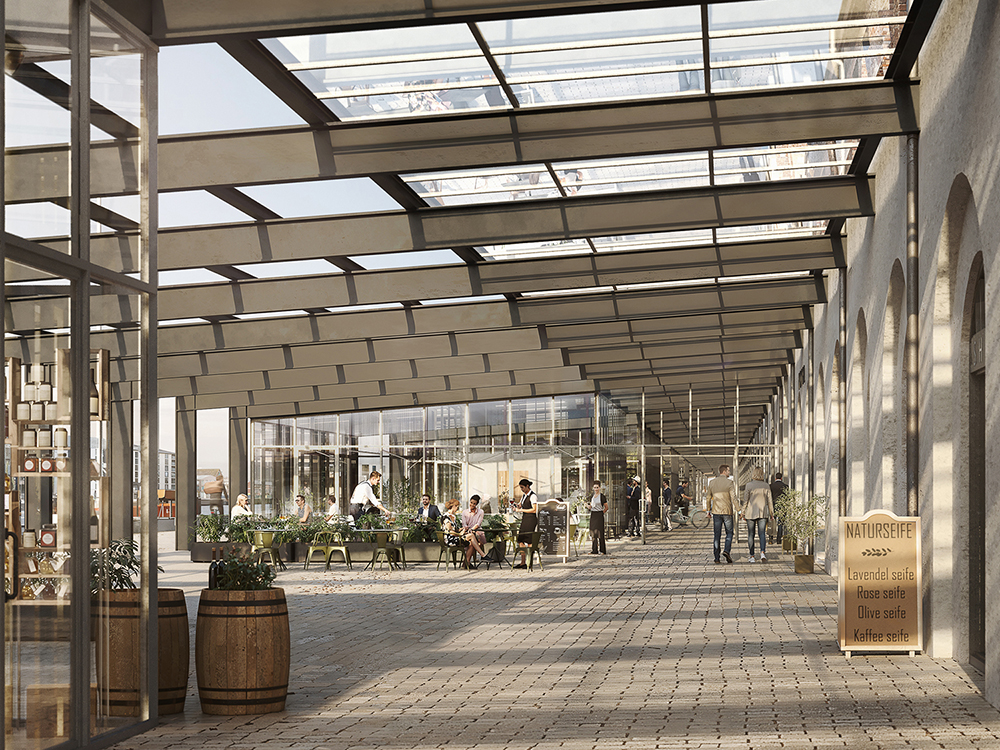 Im Bereich der ehemaligen Fischauktionshallen entlang der Kaikante entstehen neue Vorbauten, die genau wie die Erdgeschossflächen der alten Fischhallen, durch Einzelhandel und Gastronomie genutzt werden.